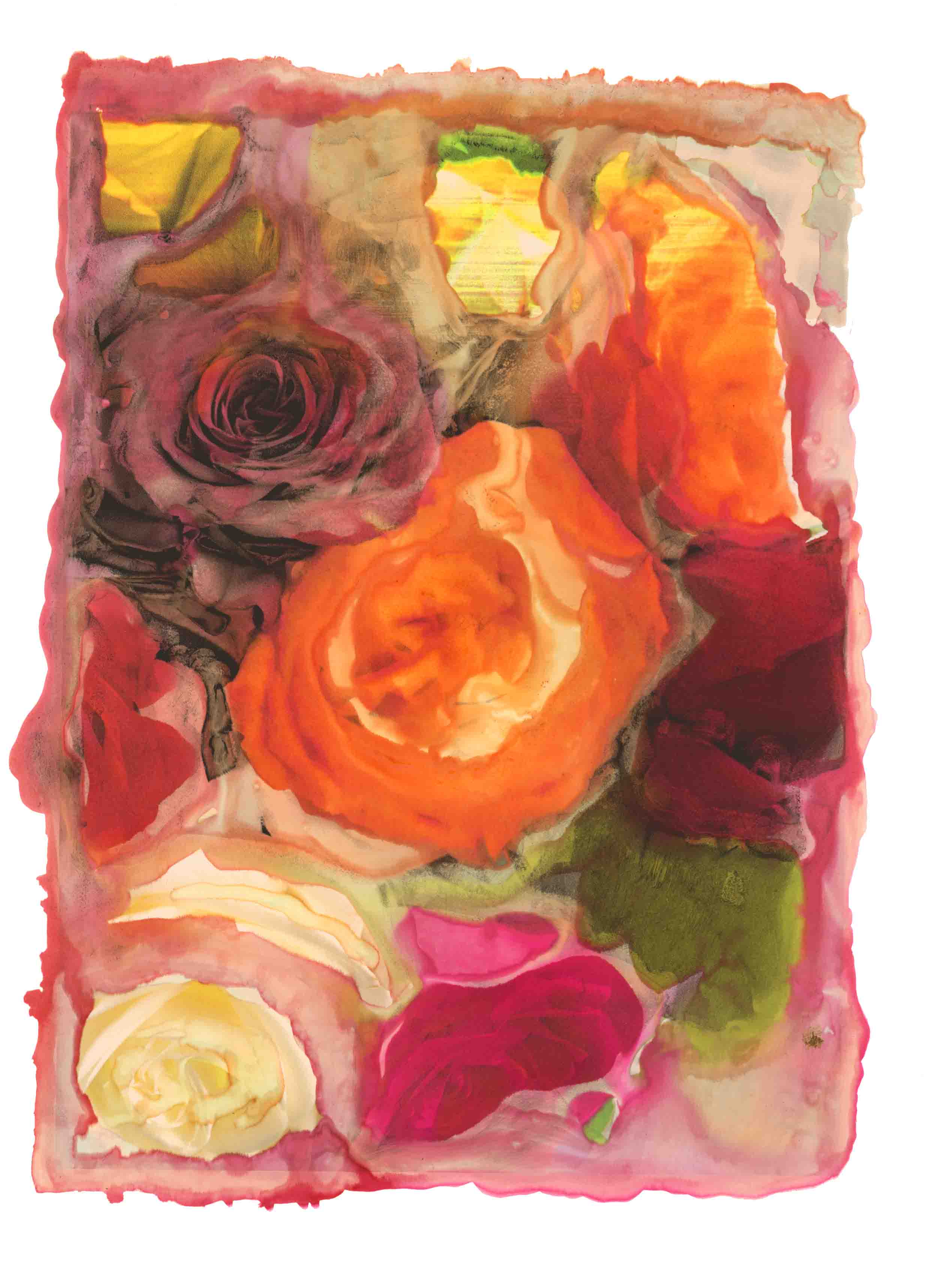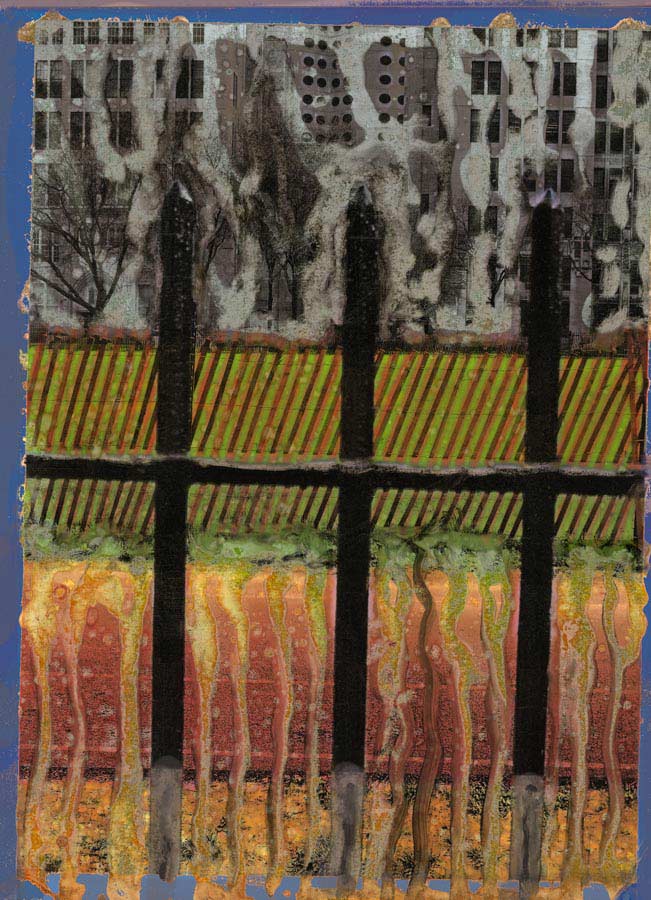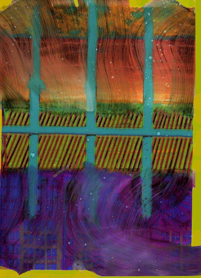 Les ravages provoqués par l’eau et par l’accident des réacteurs nucléaires m’ont inspiré une série d’images créées, en un premier temps, à partir de mes photos de paysages et jardins japonais que j’avais tant aimés et qui ont disparu depuis. J’ai soumis mes tirages jet d’encre à la destruction progressive par l’eau, grâce au pinceau. En un second temps, j’ai appliqué le procédé à des sujets divers, créant des tempêtes grâce à un verre d’eau...